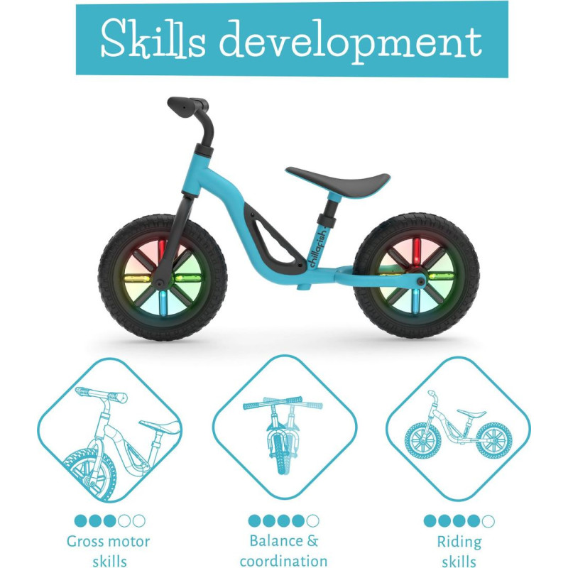 Jūsu iepirkumu grozs ir tukšs! Jaunums! Chillafish Charlie 10" līdzsvara velosipēds, ar gaismiņām no 1,5 līdz 4 gadiem! CPCH02SKY Riepās integrēti tumsā spīdoši atstarotāji! Nav nepieciešamas baterijas, brauc un spīdi!